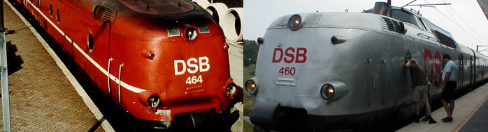 Til venstre det tyske udgangspunkt - til højre det danske lyntogsæt Nordjyden. Læg mærke til at det tyske tog ikke kan deles på midten, som i den danske version.